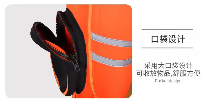 3、门襟拉链、踝部、腕部用双向的拉链,使救援者穿、脱装备快和便捷;